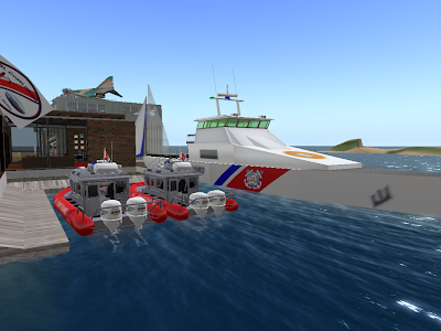 Second Life Coast Guard: The Second Life Coast Guard was created by Admiral Sanstrom Laxness, a retired RL USMC major, who is active in the RL Coast Guard Auxillary. The Second Life Coast Guard station at Santa Catalina, is located at Hollywood Airport. Rezzing is open at Hollywood Airport and there are also sailing waters so sailing enthusiasts can also sail or fly! The station at Santa Catalina is the Second Life Coast Guard's Aviation Training Center and District Headquarters. Potential members can sign up and join the Second Life Coast Guard to become either as a "friend and supporter" or an actual active duty member.
